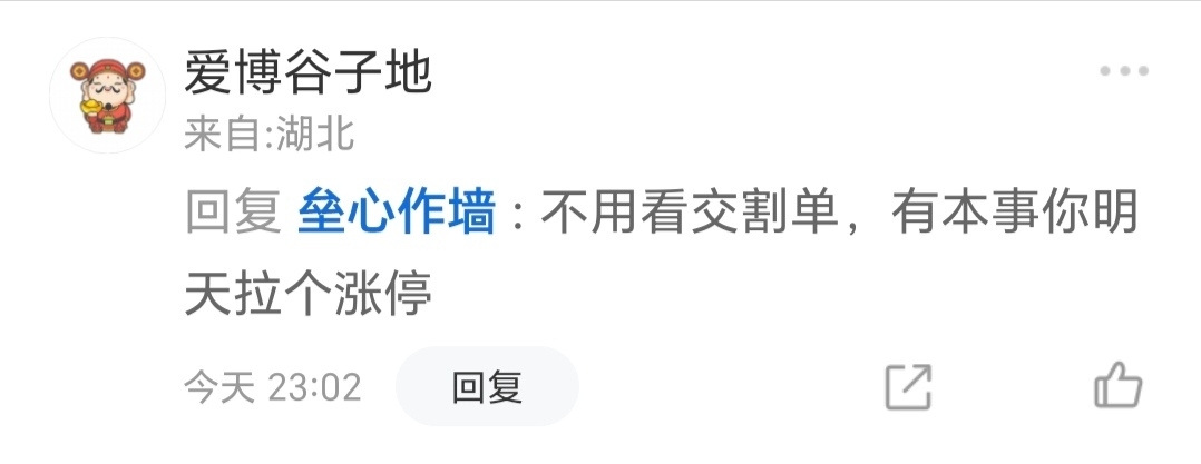 温馨提示: 1.根据《证券法》规定,禁止编造、传播虚假信息或者误导性信息,扰乱证券市场;2.用户在本社区发表的所有资料、言论等仅代表个人观点,与本网站立场无关,不对您构成任何投资建议。用户应基于自己的独立判断,自行决定证券投资并承担相应风险。《东方财富社区管理规定》