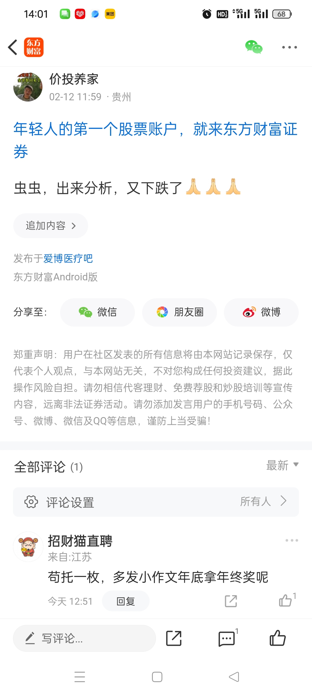 温馨提示: 1.根据《证券法》规定,禁止编造、传播虚假信息或者误导性信息,扰乱证券市场;2.用户在本社区发表的所有资料、言论等仅代表个人观点,与本网站立场无关,不对您构成任何投资建议。用户应基于自己的独立判断,自行决定证券投资并承担相应风险。《东方财富社区管理规定》
