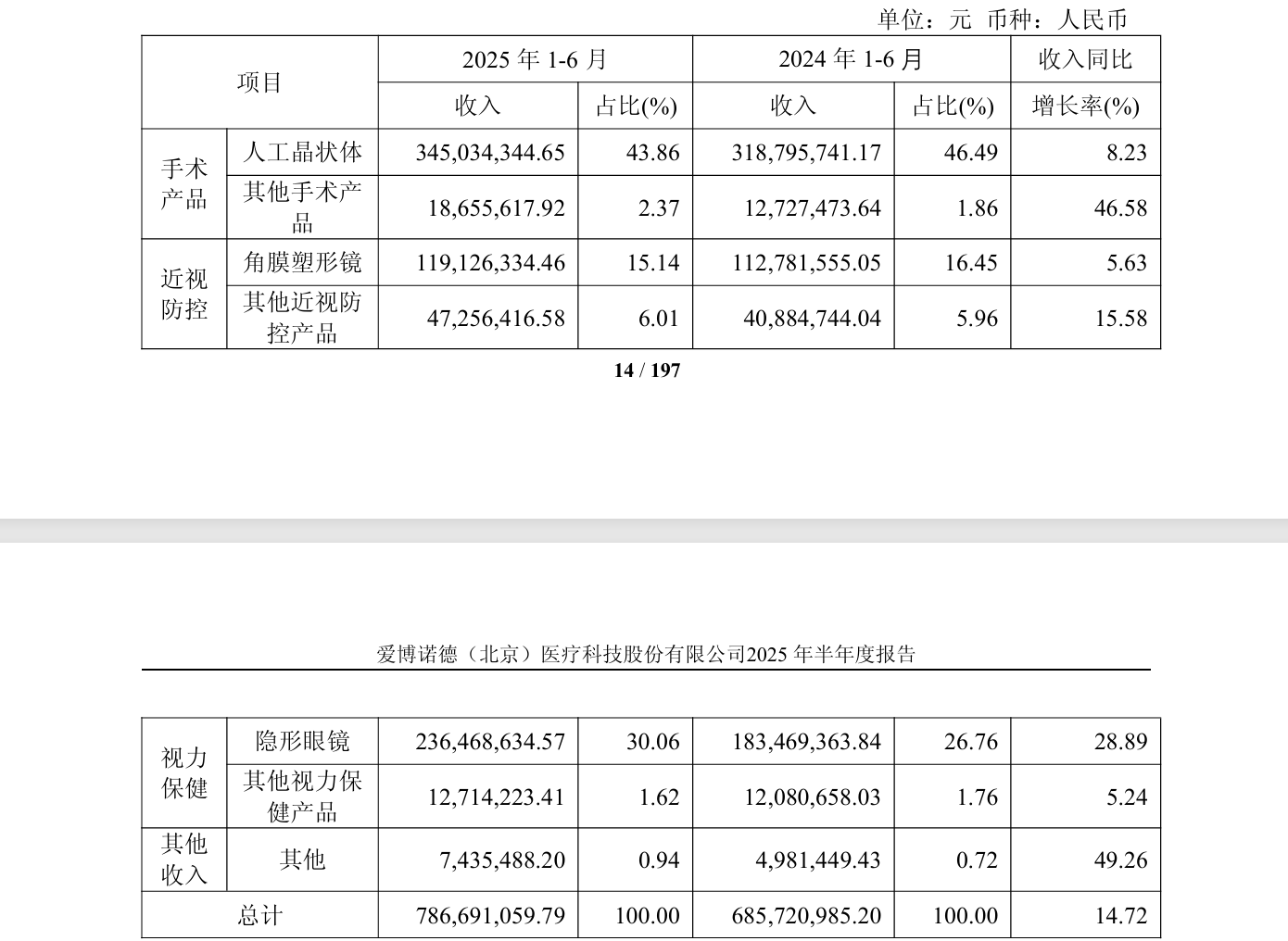 具体而言,2024年5月起,人工晶状体国家集采落地。另外,爱博医疗在2025年8月的调研活动中提及,由于医保控费及白内障筛查活动受限,2025年上半年行业整体白内障手术量呈小幅下滑趋势,公司手术治疗板块(人工晶状体)剔除国际业务和新品“龙晶”(有晶体眼人工晶状体)后,收入实则下滑。