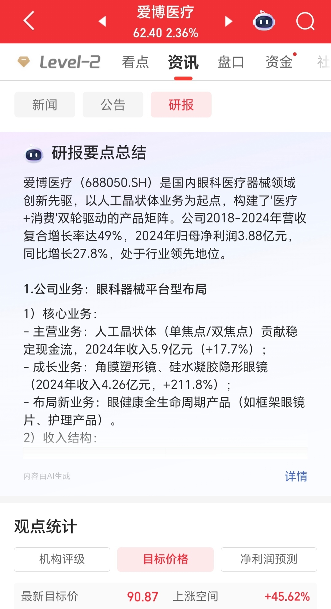 $爱博医疗(SH688050)$ 最新目标价