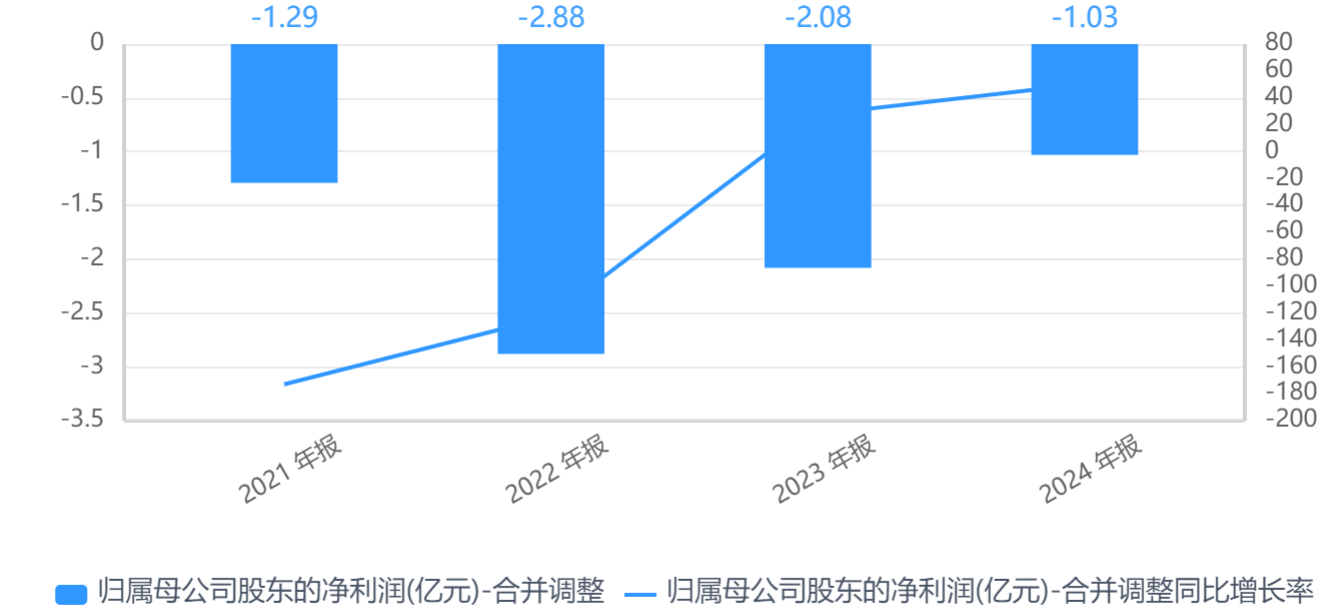纵观上市后的业绩表现,佳华科技除了在首年保持盈利,自2021年起却陷入持续亏损的困境,营收亦随之逐步萎缩。2021年至2024年,公司营业收入分别为4.86亿元、2.61亿元、3.22亿元和3.00亿元;归母净利润分别亏损1.29亿元、2.88亿元、2.08亿元和1.03亿元。