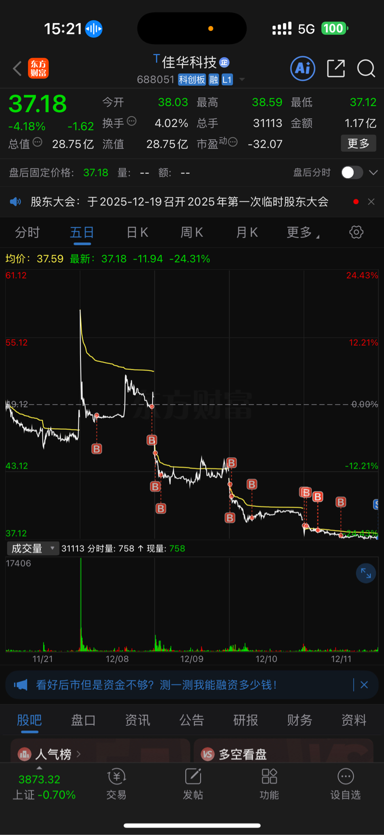 $佳华科技(SH688051)$ 下跌趋势的东西,我交了不下10次学费本来我自己买10,000加到20万今天下午割掉,连亏四天