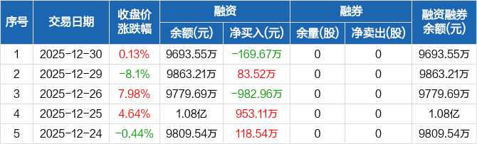 佳华科技:融资净偿还169.67万元,融资余额9693.55万元(12-30)