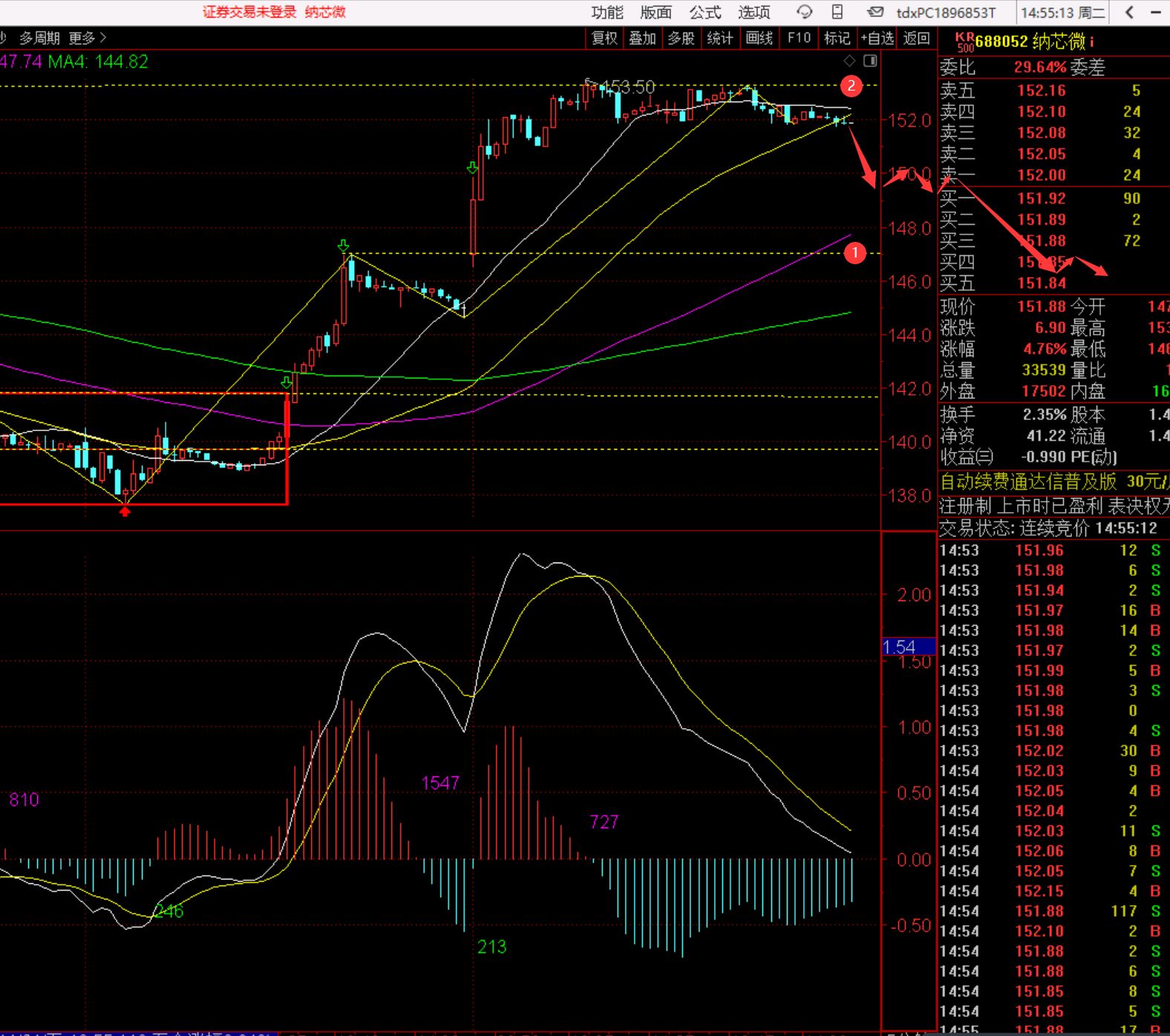 $纳芯微(SH688052)$  如短期跌破147.41容易超跌反弹。复而继续下跌直到137.41。