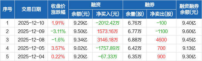 纳芯微:融资净偿还2012.42万元,融资余额9.29亿元(12-10)