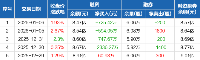 纳芯微:连续4日融资净偿还累计4403.41万元(01-06)