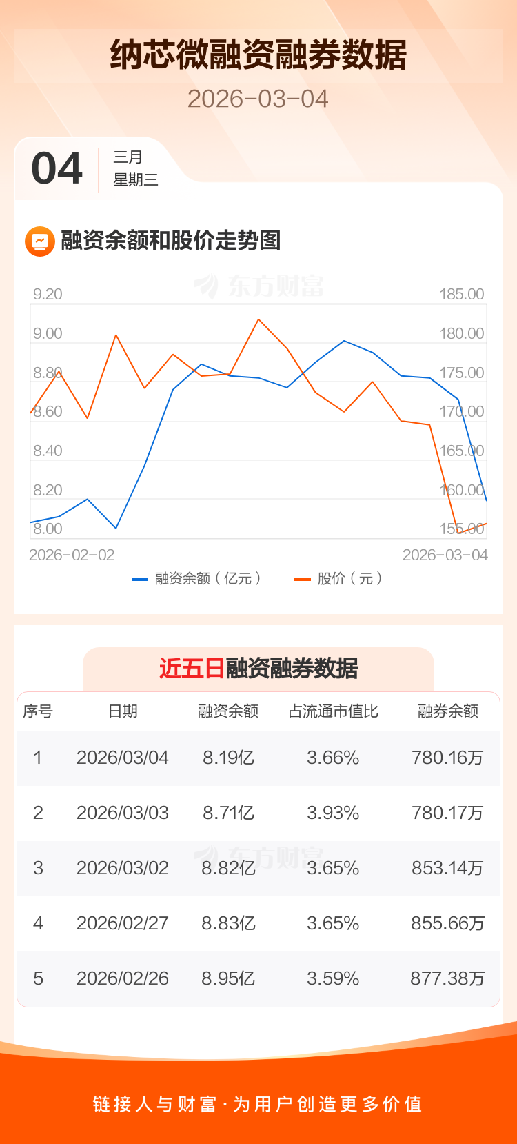 交易所最新数据显示,纳芯微于2026年3月4日获融资买入1972.39万元,融资偿还7187.60万元,当日融资净偿还5215.21万元。目前,该股融资余额8.19亿,占流通市值比例为3.66%。