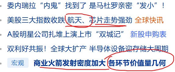 本周五,每股美股商业航天创新高,国内跃跃欲试,寻找可靠标的是投资者的责任。。。。。。