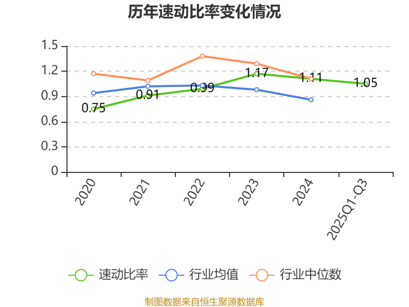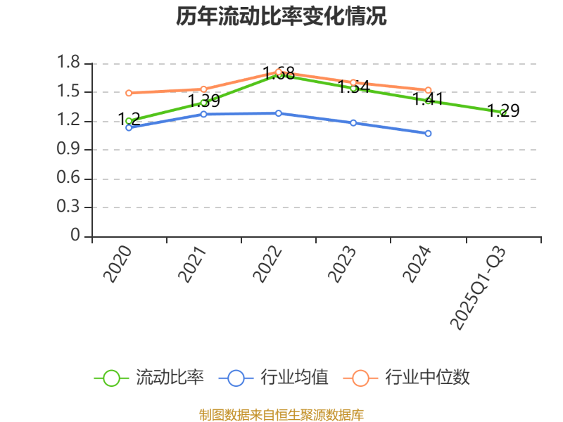 2025年前三季度,公司流动比率为1.29,速动比率为1.05。