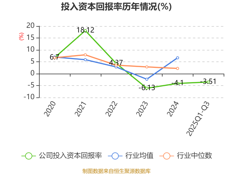 盈利能力方面, 2025年前三季度公司加权平均净资产收益率为-4.28%,同比下降0.47个百分点。公司2025年前三季度投入资本回报率为-3.51%,较上年同期上升0.11个百分点。