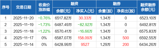 龙腾光电:融资净买入30.33万元,融资余额6517.82万元(11-20)
