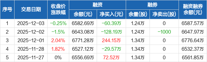 龙腾光电:融资净偿还60.39万元,融资余额6582.69万元(12-03)