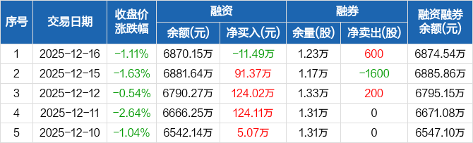 龙腾光电:融资净偿还11.49万元,融资余额6870.15万元(12-16)