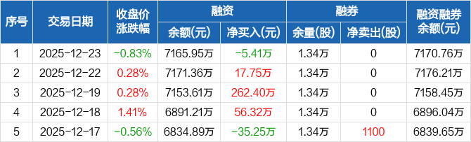 龙腾光电:融资净偿还5.41万元,融资余额7165.95万元(12-23)