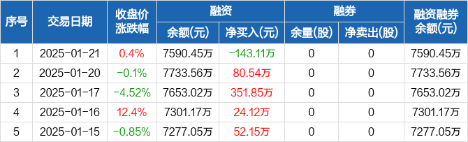 莱伯泰科:融资净偿还143.11万元,融资余额7590.45万元(01-21)