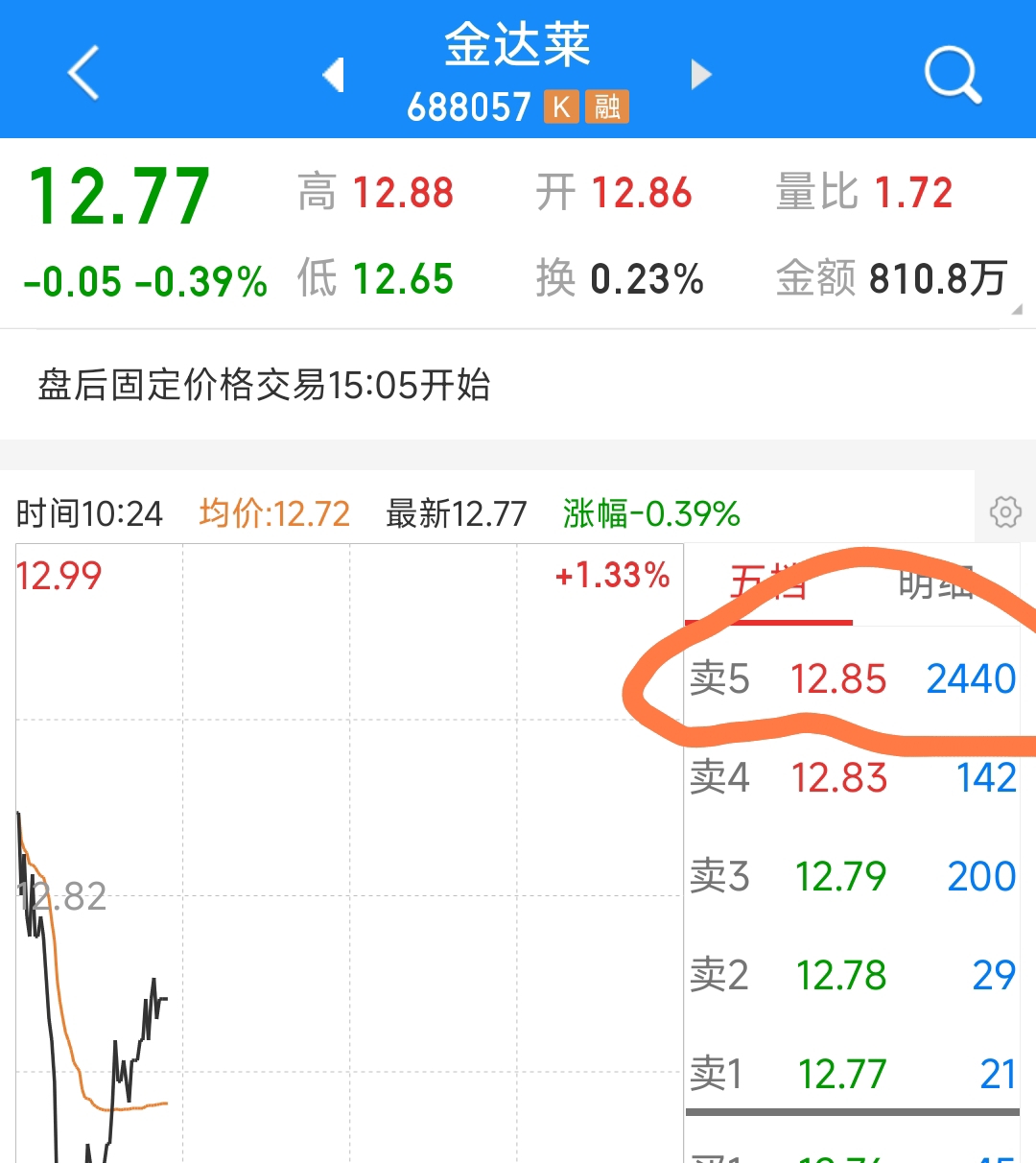 $金达莱(SH688057)$ 这个2400手又出现了。大概率今天还是下跌。