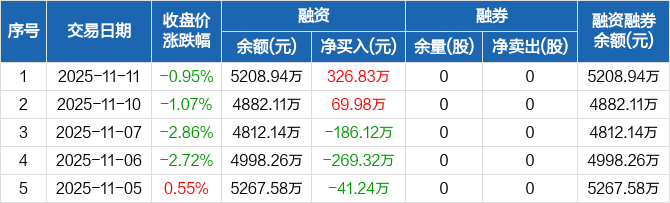 宝兰德:融资净买入326.83万元,融资余额5208.94万元(11-11)