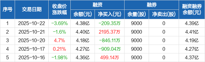 华锐精密:融资净偿还209.35万元,融资余额4.38亿元(10-22)