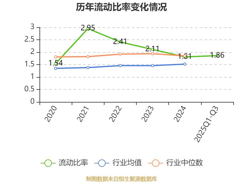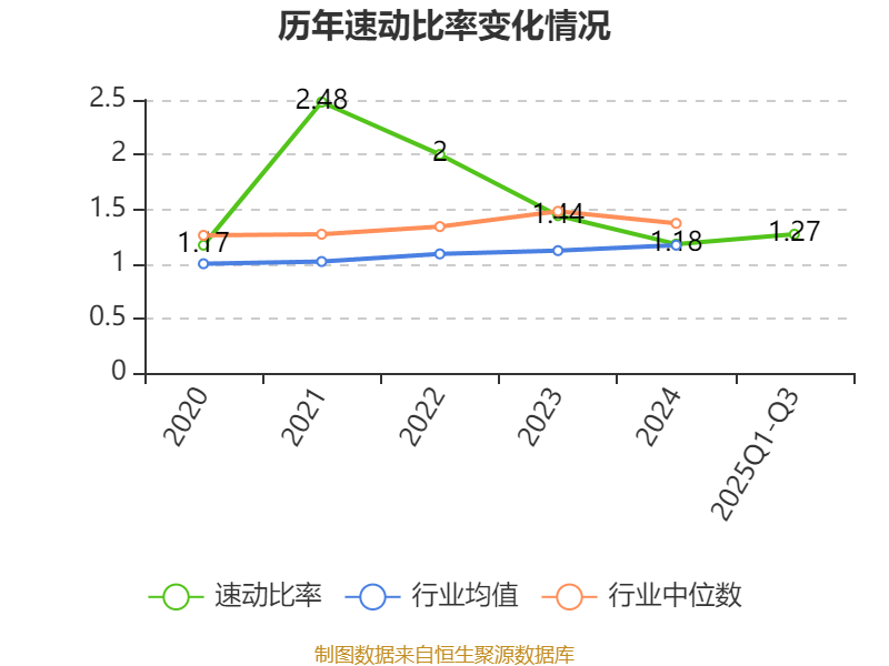 2025年前三季度,公司流动比率为1.86,速动比率为1.27。