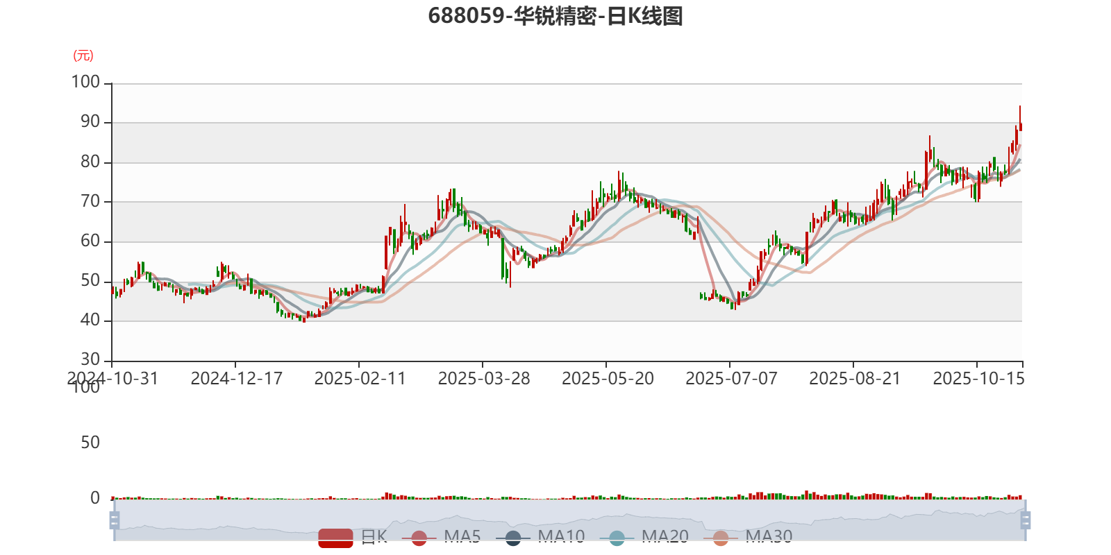 以10月30日收盘价计算,华锐精密目前市盈率(TTM)约为46.72倍,市净率(LF)约5.46倍,市销率(TTM)约8.27倍。