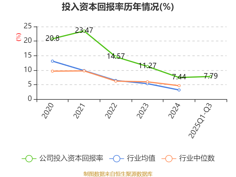 盈利能力方面, 2025年前三季度公司加权平均净资产收益率为9.9%,同比上升3.88个百分点。公司2025年前三季度投入资本回报率为7.79%,较上年同期上升2.42个百分点。