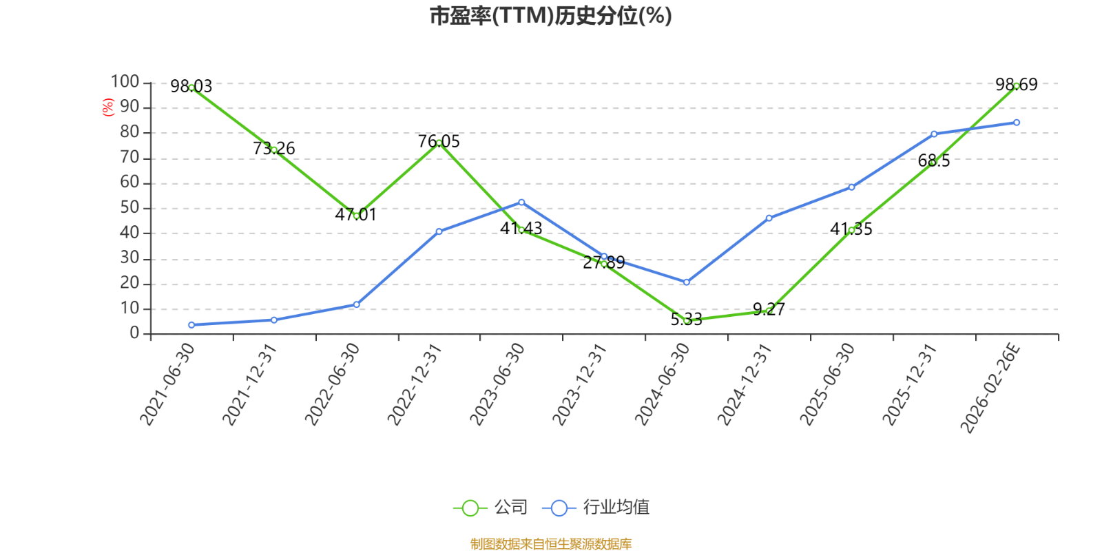 市盈率、市净率为负时,不显示当期分位数,会导致折线图中断。
