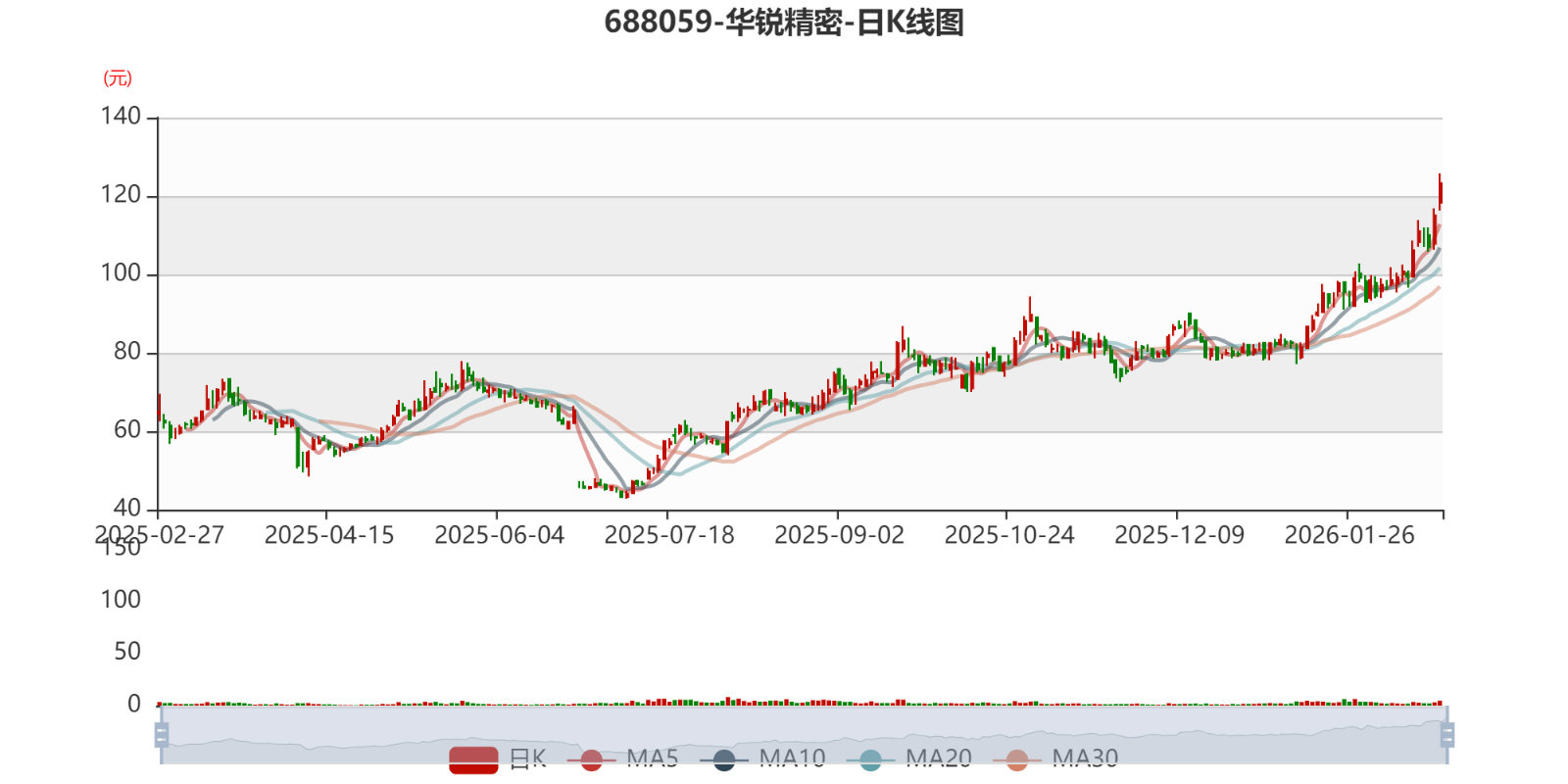 中证智能财讯华锐精密(688059)2月26日晚间披露2025年业绩快报,公司实现营业收入10.14亿元,同比增长33.65%;归母净利润1.87亿元,同比增长74.61%;扣非净利润1.85亿元,同比增长77.17%;基本每股收益2.13元,加权平均净资产收益率为13.19%。以2月26日收盘价计算,华锐精密目前市盈率(TTM)约为65.98倍,市净率(LF)约8.4倍,市销率(TTM)约13.04倍。
