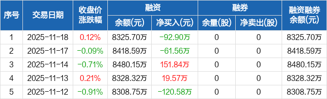 灿瑞科技:融资净偿还92.9万元,融资余额8325.7万元(11-18)