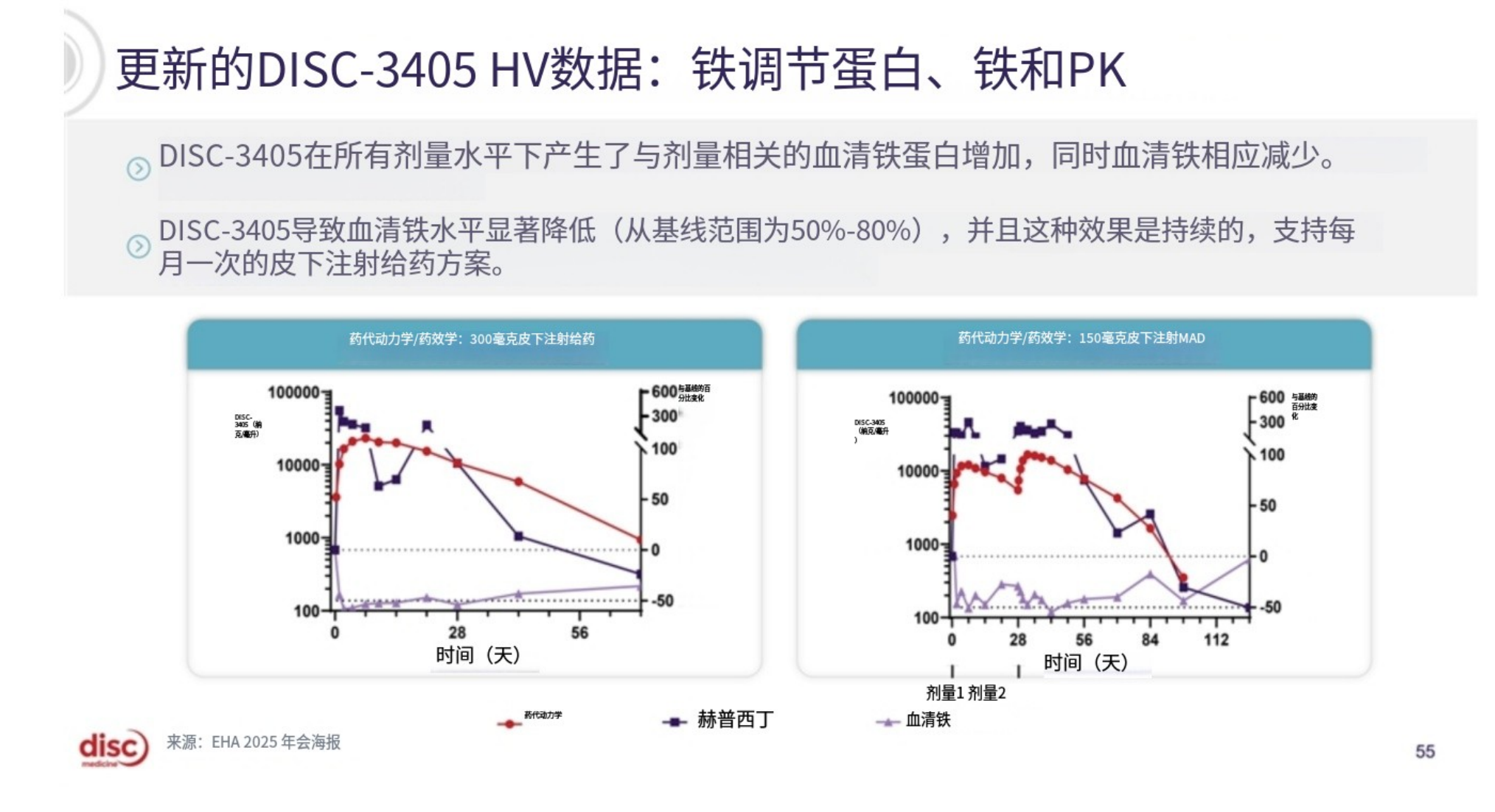 昨天DICS刚刚发布的数据,DICS-3405血清铁下降70%以上,支持一个月注射一次,安全性良好