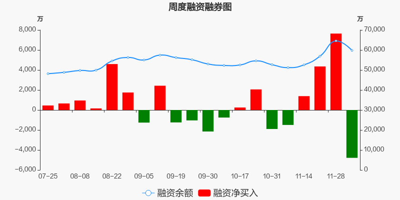 凯赛生物本周(2025/12/01-2025/12/05)累计跌幅达3.12%,截至12月5日最新股价报收46.01元。从增量上来看,12月1日至12月5日融资买入交易规模6983.06万元,融资偿还规模1.18亿元,期内融资净偿还4783.19万元。从存量上来看,截止12月7日,凯赛生物融资融券余额6.04亿元,其中融资余额规模5.98亿元,融券余额规模660.68万元。