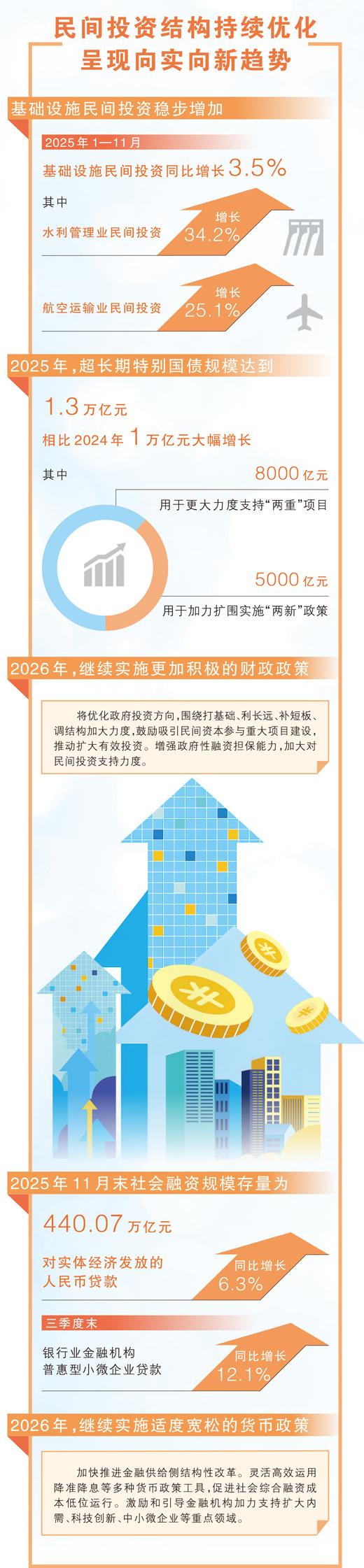 民间投资是稳增长、调结构、促就业的重要支撑力量。2025年,各地区各部门落实更加积极有为的宏观政策,把政策红利实实在在送到经营主体手中,持续激发民间投资活力,促进民营经济向新向优发展。