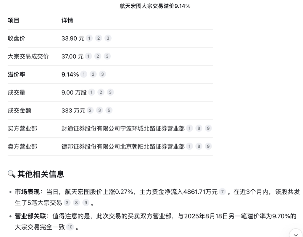 航天宏图又一大宗交易,溢价9.14%,厉害呀!继续加油!