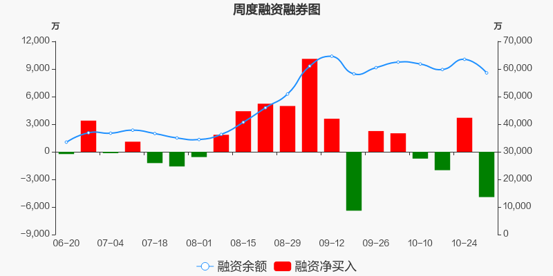 航天宏图本周(2025/10/27-2025/10/31)累计跌幅达6.81%,截至10月31日最新股价报收30.77元。从增量上来看,10月27日至10月31日融资买入交易规模1.58亿元,融资偿还规模2.08亿元,期内融资净偿还4920.97万元。从存量上来看,截止11月2日,航天宏图融资融券余额5.87亿元,其中融资余额规模5.86亿元,融券余额规模76.95万元。