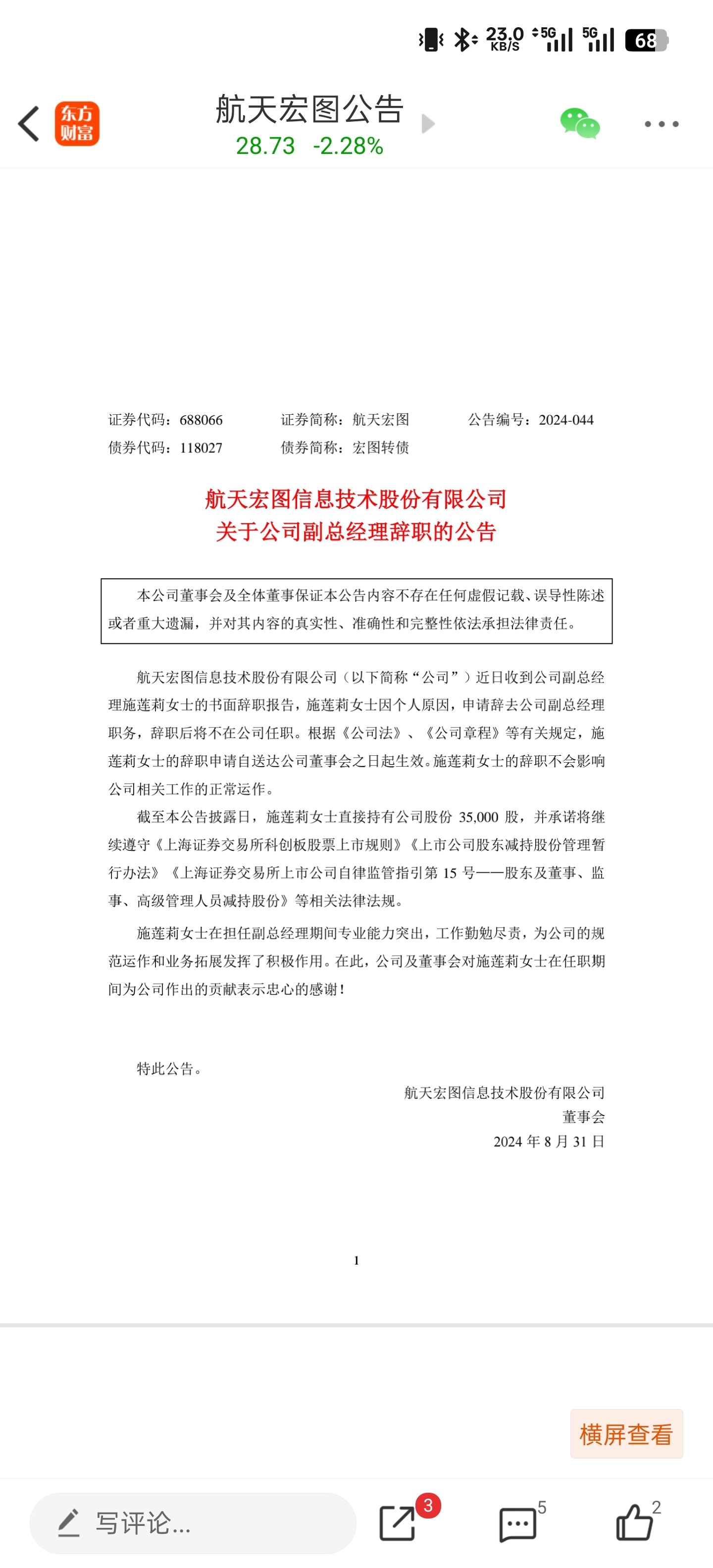 被心虚的人举报了,这次把链接放上来。航天宏图虚假公告:2024年8月31日公告副