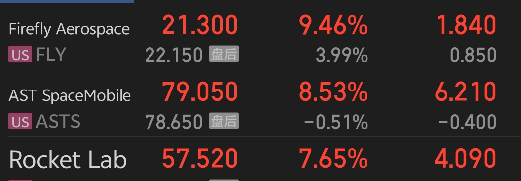 今天是不是可以好好表现一下了?美股商业航天又大涨。