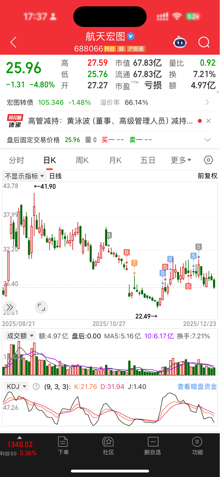 $航天宏图(SH688066)$ 但凡随便选一只航天都不会亏这么多唉