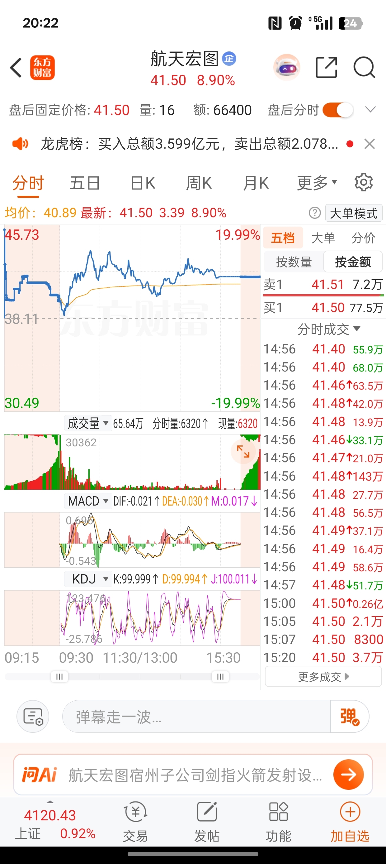$航天宏图(SH688066)$ 为什么15点20还有成交单???