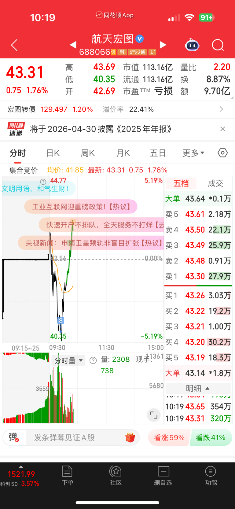 $航天宏图(SH688066)$ 心里难受