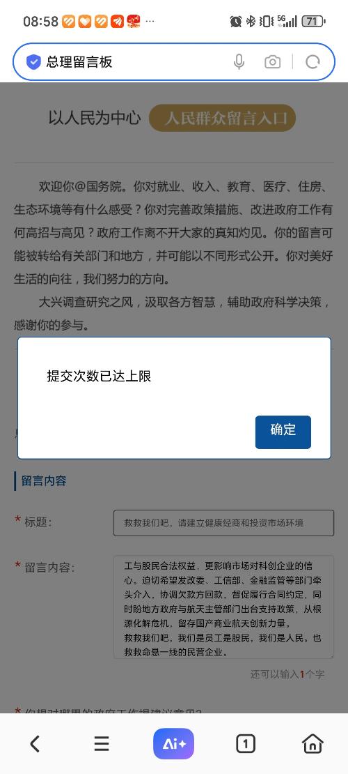 $航天宏图(SH688066)$ 今日中午致电证监会申诉,晚上亦在ZGZFW-ZL留言板写下五百余字,为航天宏图的股东、数千员工,也为老王一众奔走发声,纵使心知大概率徒劳,仍想拼尽一分力。在偌大的平台上,这些文字或许不过是旁人眼中的牢骚、不值一提的笑话,但至少我试过了。