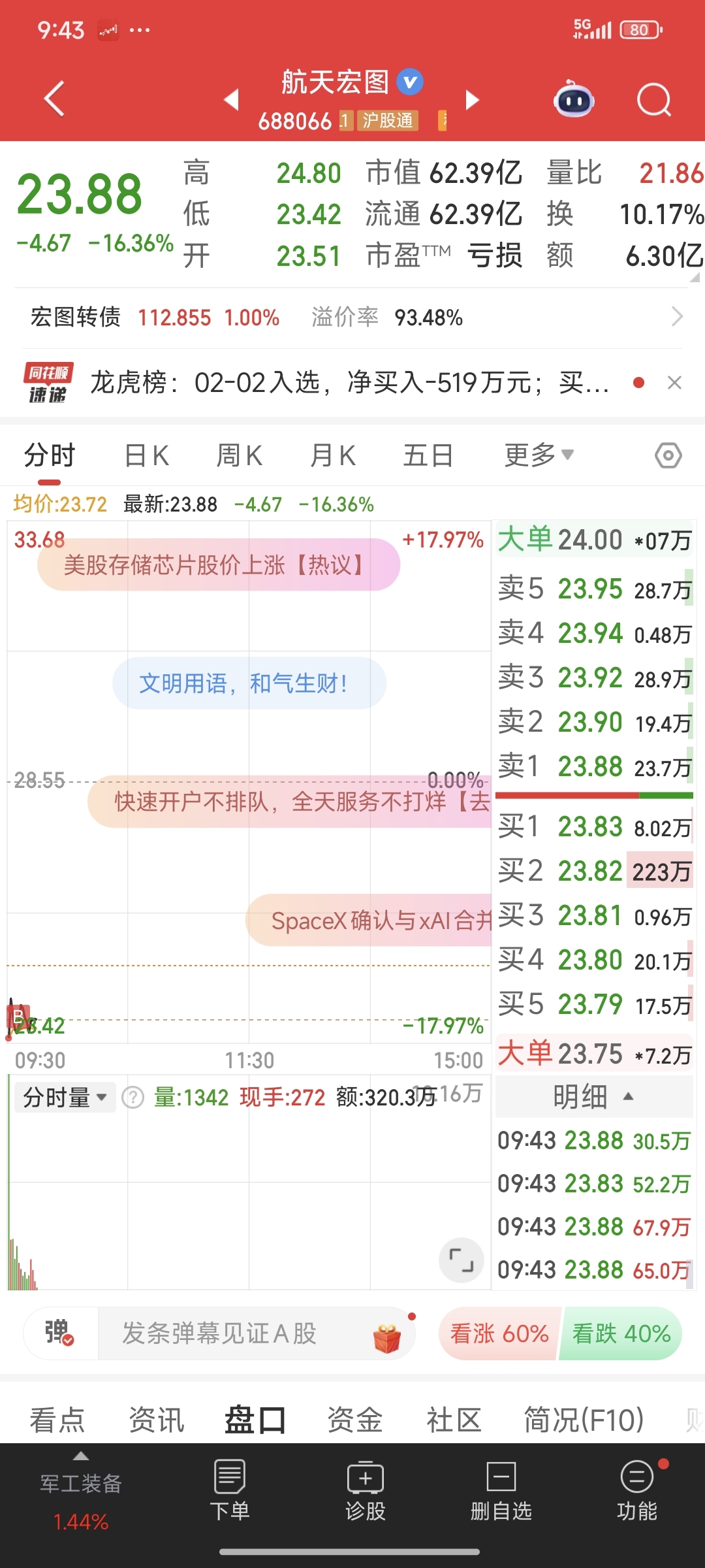 $航天宏图(SH688066)$ 融资不让买,资金全在俩融,今天只转出来50万限额了…今天再加50个。 没有人比我更懂航天宏图