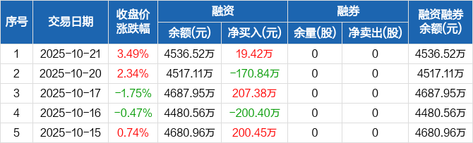 爱威科技:融资净买入19.42万元,融资余额4536.52万元(10-21)