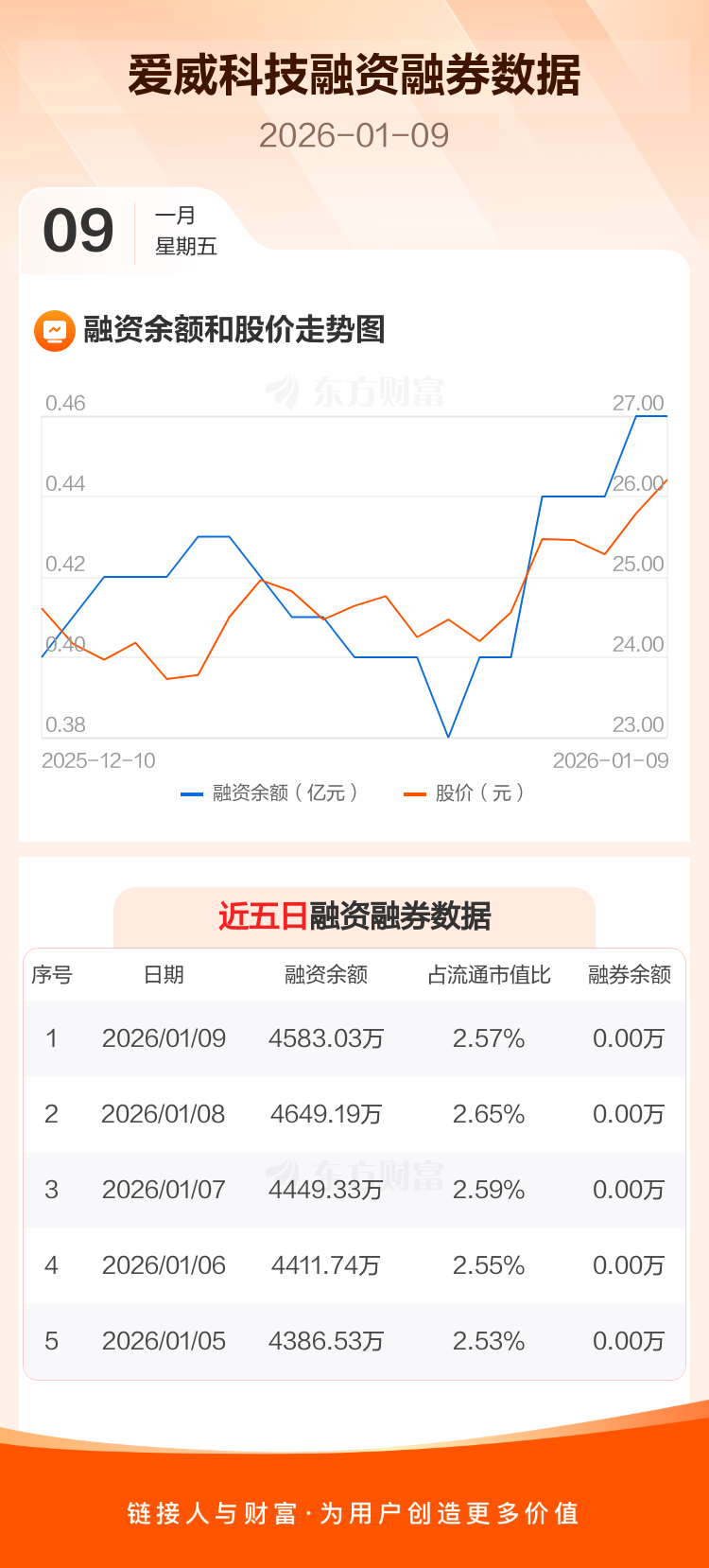 爱威科技:融资净偿还66.16万元,融资余额4583.03万元