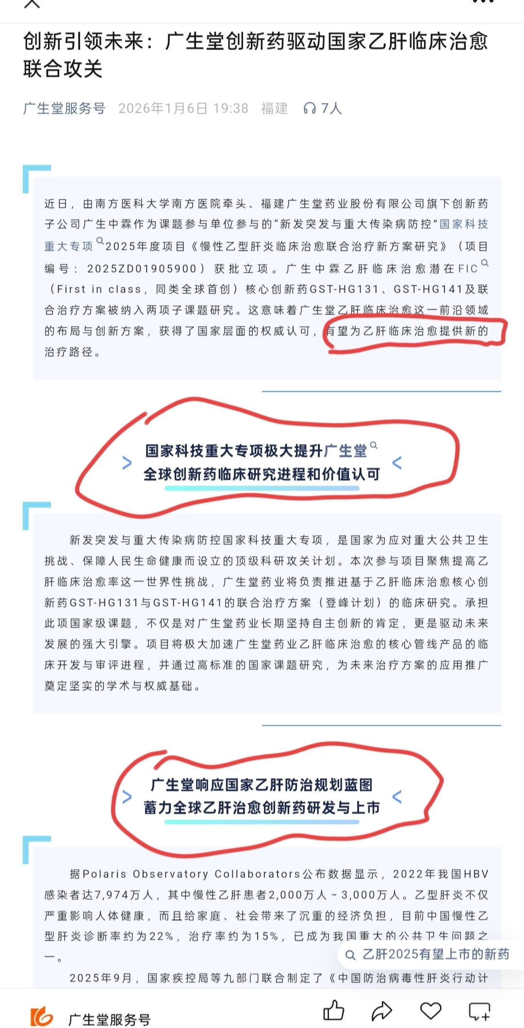 版突发重大传染病防控国家专项入选-广生堂-为国家未来5年155规划消灭乙肝,挑战乙肝治愈世界性挑战造福2亿全球乙肝治愈估值千亿