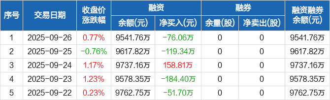 XD德林海:融资净偿还76.06万元,融资余额9541.76万元(09-26)