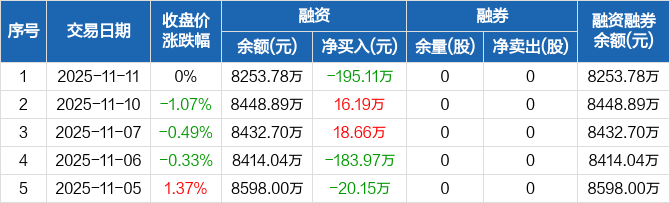 德林海:融资净偿还195.11万元,融资余额8253.78万元(11-11)