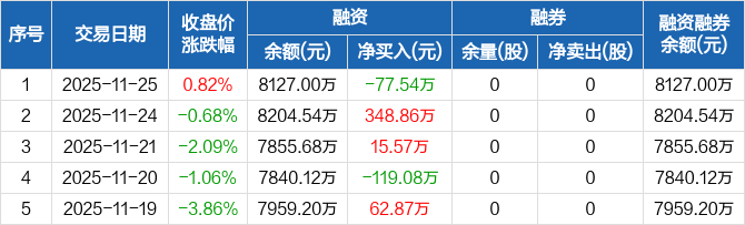 德林海:融资净偿还77.54万元,融资余额8127万元(11-25)