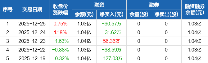 德林海:融资净偿还60.57万元,融资余额1.03亿元(12-25)