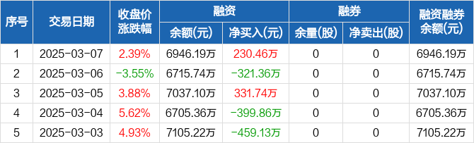 纵横股份:融资净买入230.46万元,融资余额6946.19万元(03-07)