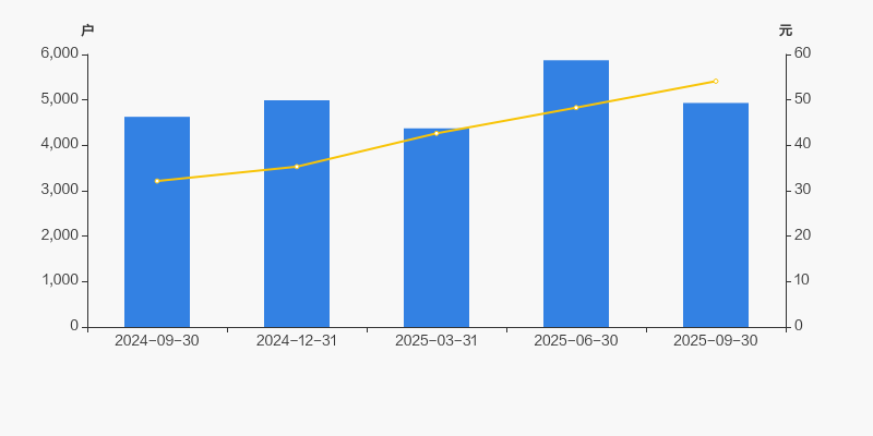 2024年9月30日至今,公司股东户数有所增长,区间涨幅为6.59%。2024年9月30日至2025年9月30日区间股价上涨68.39%。