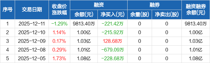 纵横股份:融资净偿还221.42万元,融资余额9813.4万元(12-11)